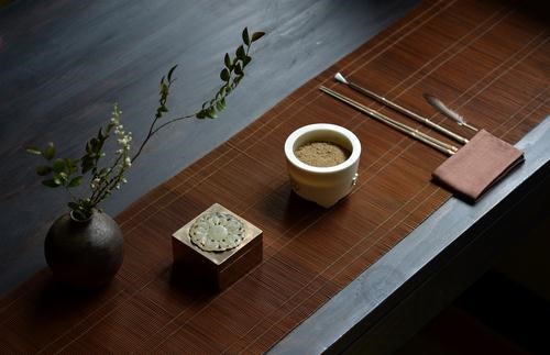 而最传统的香席为“隔火熏香”,使用的香具被称为“炉瓶三事”,即香炉、箸瓶(内放香箸、香铲、香匙、香取)与香盒。而闻香的过程中,要求静心以闲,抛开身外之事,单有香气变化与神游物外,以此获得精神上的放松和升华。