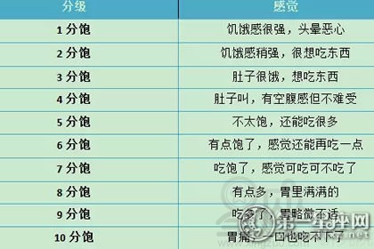 从上面的分级中我们能看到:大多数时间我们吃饱的标准都是维持在8分饱左右,而且在食物结构上又没有特别节制的情况下,是必然会吃胖的。所以,为了健康最好保持七分饱,而为了减肥,最好就要保持六分饱了。