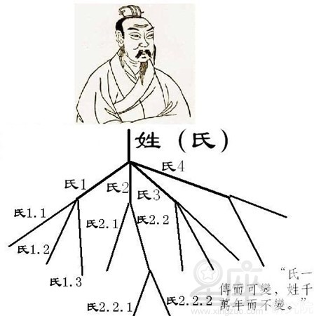 夏商周三代,姓的社会职能是代表有共同血缘关系的种族的称号,而氏则是从姓中派生出来的分支。《通鉴外纪》说,“姓者,统其祖考之所出;氏者,别其子孙之所自分。”姓起源较早,形成后也较为稳定;氏起源较晚并不断发生变化。《国语·周语》载:“姓者,生也,以此为祖,令之相生,虽不及百世,而此姓不改。族者,属也,享其子孙共相连属,其旁支别属,则各自为氏。”总之,姓为氏之本,氏由姓所出。商周以前,姓用以区别婚姻,故有同姓、异姓、庶姓之说。氏用以区别贵贱,贵者有氏,而贫贱者有名无氏。氏同而姓不同,婚姻可通;同姓不可通婚。