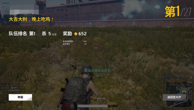 大吉大利,晚上吃鸡(简称“吃鸡”),网络流行语。该词语最早来源于电影《决胜21点》,随后因在游戏《绝地求生:大逃杀》中出现而火遍网络。当你在该游戏中获得第一名的时候就会有一段台词出现:“大吉大利,晚上吃鸡!”所以,“吃鸡”即代指玩家在《绝地求生:大逃杀》等大逃杀游戏中取得第一名。