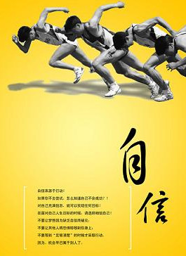 自信心(confidence),在心理学中,与其最接近的是班杜拉(A.Bandura)在社会学习理论中提出的自我效能感 (self-efficacy)的概念,是指个体对自身成功应付特定情境的能力的估价。自信与否原本是描述人在社会适应中的一种自然心境,即人尝试用自己有限的经验去把握这个陌生世界时的那种忐忑不安的心理过程。但我们必须清楚 ,【信心】只是【成功后】的【良性情绪】,自信不是自大、自傲,但从逻辑来讲依然有其盲目性。而我们可以通过挑前面的位子坐、练习正视别人、把你走路的速度加快25%、练习当众发言等等方法建立我们自信的方法。