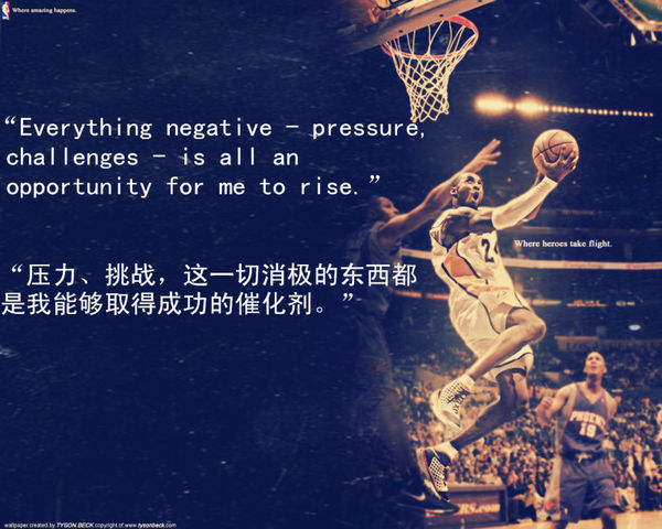 压力、挑战,这一切消极的东西都是我能够取得成功的催化剂。——科比