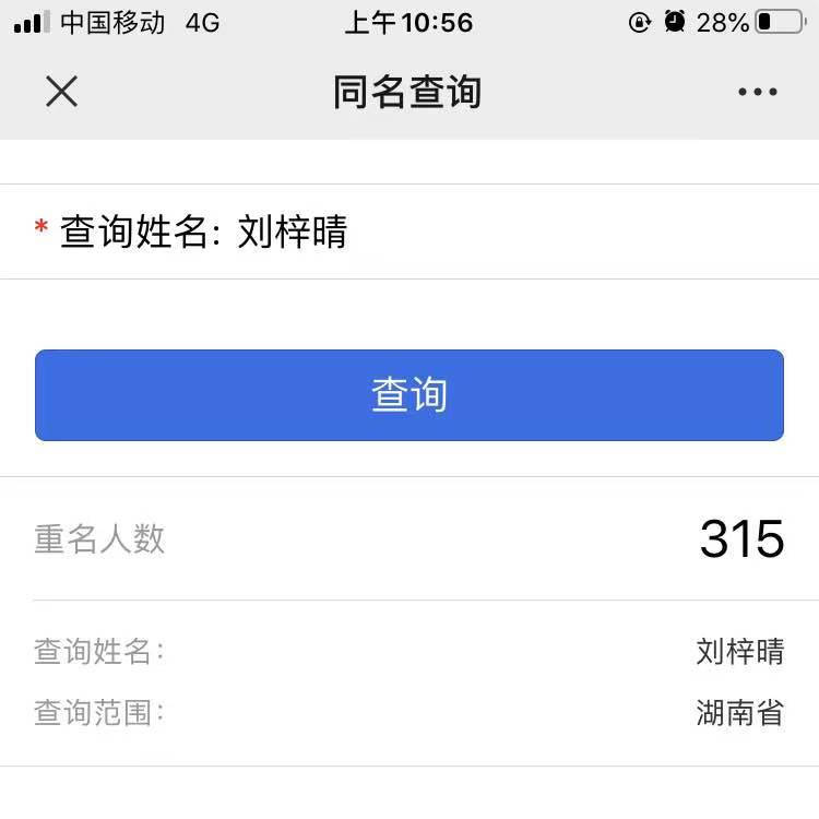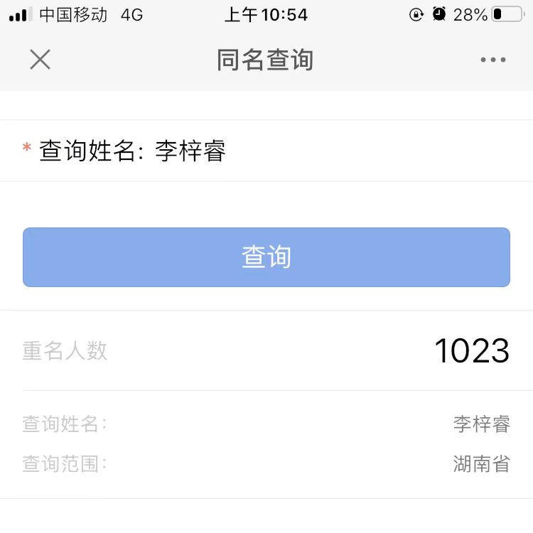 看到这里,时刻小编忍不住在湖南公安部官方提供的湖南重名查询系统里,随便选了几个大姓氏查了一下。