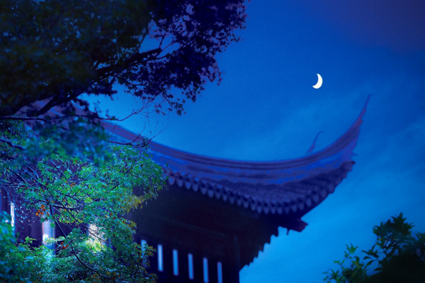 “月如钩,寂寞梧桐深院锁清秋”,寥寥12个字,形象地描绘出了词人登楼所见之景。仰视天空,缺月如钩。“如钩”不仅写出月形,表明时令,而且意味深长:那如钩的残月经历了无数次的阴晴圆缺,见证了人世间无数的悲欢离合,如今又勾起了词人的离愁别恨。俯视庭院,茂密的梧桐叶已被无情的秋风扫荡殆尽,只剩下光秃秃的树干和几片残叶在秋风中瑟缩,词人不禁“寂寞”情生。然而,“寂寞”的不只是梧桐,即使是凄惨秋色,也要被“锁”于这高墙深院之中。而“锁”住的也不只是这满院秋色,落魄的人,孤寂的心,思乡的情,亡国的恨,都被这高墙深院禁锢起来,此景此情,用一个愁字是说不完的。