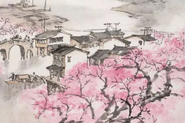 去年冬天,就在这扇门里,姑娘脸庞,相映鲜艳桃花。