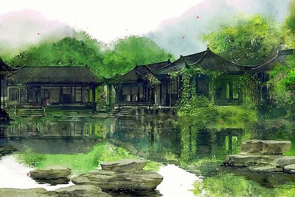 西塞山前白鹭飞,桃花流水鳜鱼肥。青箬笠,绿蓑衣,斜风细雨不须归。