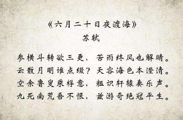 9、参横斗转欲三更,苦雨终风也解晴。——苏轼《六月二十日夜渡海》