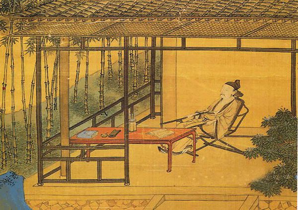 窗外竹子的影子还在书桌上摇摆,砚台中的墨汁好像发出了野外泉水的叮咚声。