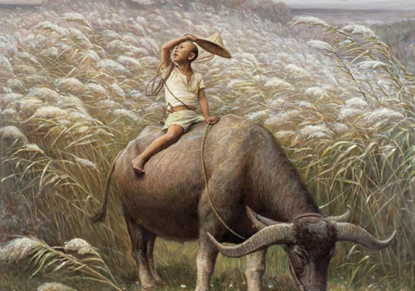 26、江村小儿好夸骋,脚踏牛头上牛领。——《杜秀才画立走水牛歌》 唐·顾况