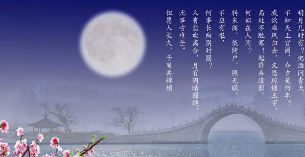 明月几时有?把酒问青天。不知天上宫阙,今夕是何年。我欲乘风归去,又恐琼楼玉宇,高处不胜寒。起舞弄清影,何似在人间。
