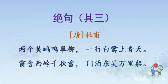两只黄鹂在新绿的柳条间婉转地鸣叫;一行排列整齐的白鹭正奋力地飞向蓝天。