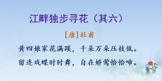 黄四娘家花儿茂盛得把小路都遮住了,千朵万朵的花儿把枝条压得又弯又低。