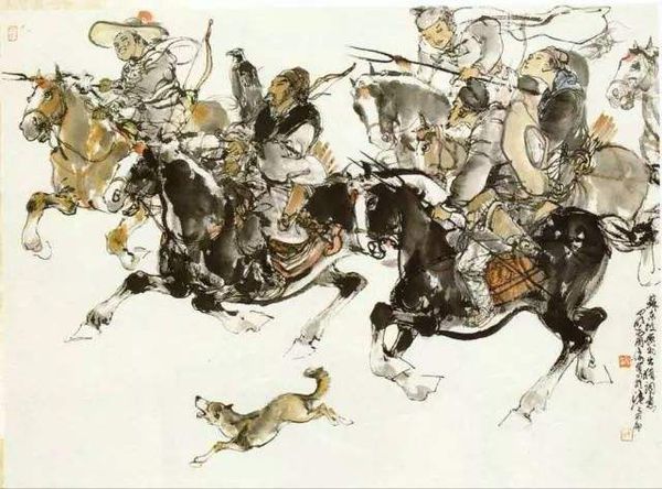 译文:我姑且抒发一下少年的豪情壮志,左手牵着黄犬,右臂擎着苍鹰,戴着华美鲜艳的帽子,穿着貂皮做的衣服,带着上千骑的随从疾风般席卷平坦的山冈。为了报答满城的人跟随我出猎的盛情厚意,我要像孙权一样,亲自射杀猛虎。