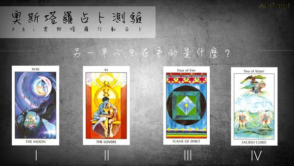 选择到这组的朋友,不知道你是否发现其时你的另一半挺需要安全感的呢?这样的排组多半代表的是恐惧与不安,因此你的另一半或许在过去的恋情当中曾经有过不愉快或是曾经遭受欺骗或背叛,因此再面对恋爱时心中的不安全感多少存在!奥斯会建议抽到这牌组的朋友,要多留意另一半啰!虽许多人都说安全感是需要自己去找寻的,但到底你还时他身旁最亲密的人之一!有时候我们就多担待些啰!当然犯不着事事都报备的不完,但只要是另一半在意的事情,我们不如就多留心一些吧!