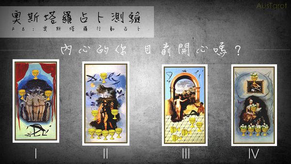 抽到这组牌的朋友,目前的你好像不是真的这么快乐唷!而这样的状况大多是你自己造成的!因为你老是将自己逼得太紧了,有时明明当下或是目前的状况已经算还不错了!但你却会因为那一点瑕疵而感到苦恼,甚至因为一点的瑕疵就否定了自己的努力!奥斯不禁要问,把自己逼得这么紧真的好吗?或许每个人都有每个人介意或要求的地方!但奥斯要提醒你了,大多时候你已经将自己逼得太紧或给自己太多的压力啰!面对这样的状况,一定要懂得适时的调适!要不到最后溃堤的可就会是自己啰!