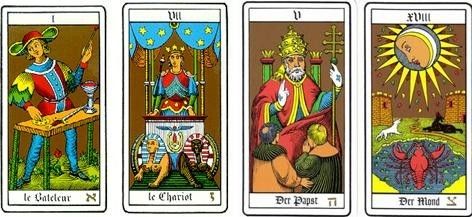 1889年,神秘学家OswaldWirth(奥斯瓦尔德-沃斯)出版了自艾特拉塔罗牌之后的第一副重新设计的神秘学塔罗牌,这副牌以马赛系塔罗牌为模式,加入了李维的卡巴拉塔罗思想,可以看到的是,这副牌中的每一张大牌底下都写有各自所对应的希伯来字母。