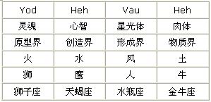 下面我列出Yod-Heh-Vau-Heh的对应表: