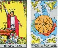 “太阳&命运之轮&魔术师”是在12对出生牌中唯一的三张牌组合。只有出生年月日相加后得出19的人才属于这独特的一组。一般来说,这个组合的人也像“命运之轮&魔术师”一样有很多的朋友,从容地穿梭于各式各样的朋友群中,非常友善,擅长社交,在社交群里很被瞩目和欢迎。他们永远都是在某种的动态中停不下来,可是这种动是有稳定性的。他们性格非常得复杂,不容易被看懂,可是头脑清晰、狡猾、接受能力强,能够接纳世界给他们带来的任何事物,所以也一般不爱埋怨。