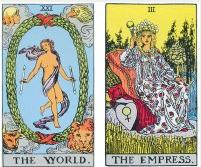 这也是一个很特殊的组合,只有出生日期相加起来有21的人才有“世界&女皇”的出生牌。此组合的人群在平衡的状态时像舞者一样的优雅、脱俗、美丽、自如。“天生我才必有用”,这对他们来说再合适不过了。因为此组合的人群会找到自己最能体现才能的活动,他们的命运会被证实、得到完满。这是一组非常强大的组合!在整合的时候,该组合的人群会非常地专注于当下此刻。他们能活在当下,活出此刻最漂亮的自己。生活和命运都会变得如此的完满、完美、有趣、安全,受鼓舞和沉浸在爱中。