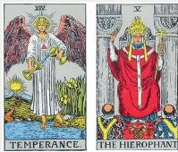 出生牌“节制&教皇”组合的人把自己的出生日期相加都能得到14和5。平衡好了的时候,此组合的人非常的有专注能力,受启发,很有魅力。他们是能让他人信任的领导,同时也能成为非常忠诚、衷心的追随者。他们所知道的、说出来的和行动的事情都是出于他们最高的自我。当没有被整合时,此组合人群会有死板、自我矛盾、极端的自以为是等负面表现。有时候也会变得很懒惰、自我膨胀、草率和粗心大意。