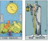出生日期相加得出18和9的人群拥有“月亮&隐士”的出生牌。此组合的人能在高度与宽度中进行,是很强大的组合。他们在阴暗中探索,是通往智慧、知识的旅行者。被整合后,此组合的人可以成为别人的指路明灯,带着更多的人群通往深度与高度并存的个人成长路径。此组合的人能给他人证明个人的灵性演变和进度是一个伟大的旅程,而且是每个人都能实现、能完成的旅程。