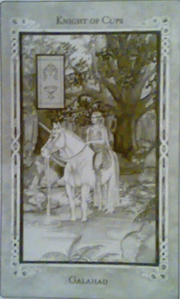 牌意小册子中关于圣杯骑士的牌意指出,如果我成为一个寻求理想的英雄,那就必须先重新认识自己的追求。
