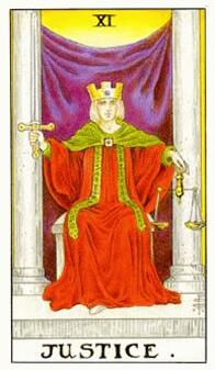 占卜里出现正义这张牌时,是一个肃静的命令。请注意:不管你为哪种情况问卜,都必须小心衡量许多因素。正义这张牌告诉你听从内心的指引,并咨询他人的意见。它建议你采取行动前必须谨慎、细心和从容,换句话说,你必须运用良好的判断力。如果你的行为保持理性,就可以做到正义。你需要在自己和他人的需要中间,或在学业、社交生活、感情、目标和课外活动里找出一个平衡点。可能会有一位第三者来协助你获得应得的公正结果,这张牌可以代表一个律师、法官、证人或执法人员等等。如果你正处理一个法律问题,只要你在正义的这一边,就可以期待一个正面的结果。你可能必须做重大决定和学习严肃的教训。