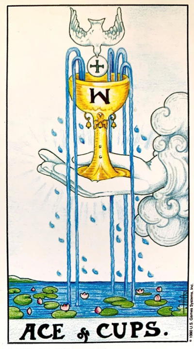 圣杯一的水池中有荷叶和莲花,都是纯净和爱的象征。