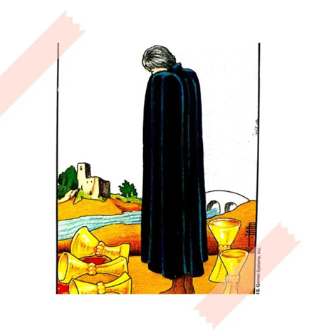 这三个圣杯是倒下的,倒下的圣杯无法容纳水(心灵容不下爱),证明这些感情已经失去了。