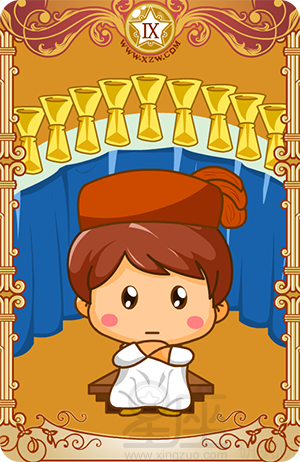 圣杯九形容一种对能圆满达成工作而感到的骄傲和满足。你内心所拥有幸福和喜悦的感觉,可能是来自于你的工作环境、人际关系,或是来自一种心灵上的成就感。
