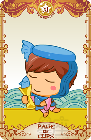 塔罗牌中的侍卫牌都和学习有关,而且由于圣杯组牌涉及情感和直觉,所以这张牌可能意味着透过冥想,或其他任何类似的被动方式来进行心灵上的学习或发展。