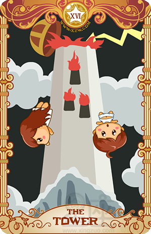 倒立的高塔表示你抗拒放开你所压抑的东西,这可能会导致冒出另一股力量,并带来另一项突如其来、爆发力十足的改变。不论你如何抗拒改变,它迟早会发生。